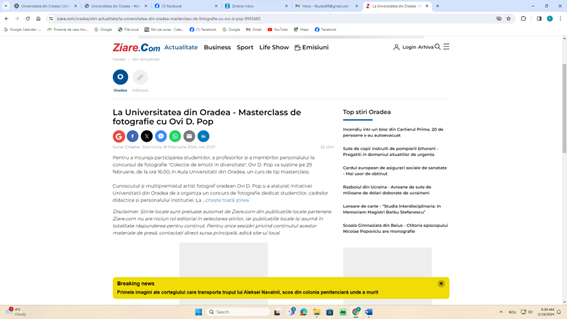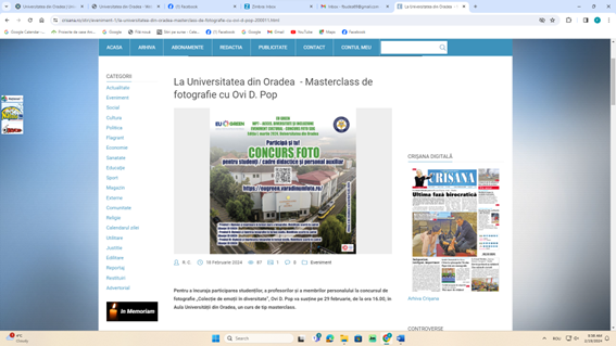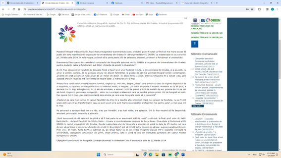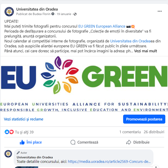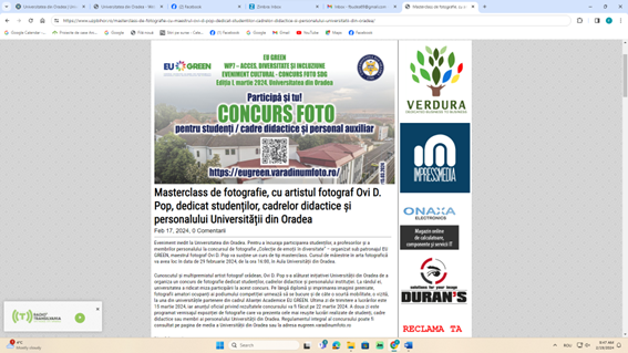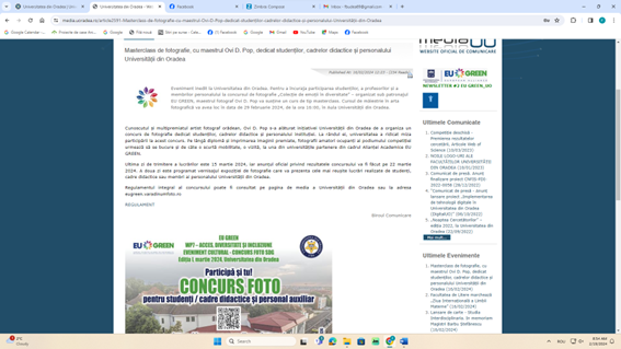 Description: Articles regarding the announcement, activities and results of the WP7 photo contest organized at University of Oradea