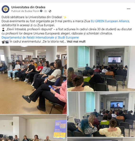 Communication Activity Name: 9 May (Europe`s Day was the EU GREEN Day at the University of Oradea. Q&A session about EU and EU GREEN, plus an historical movie for the foreign students.