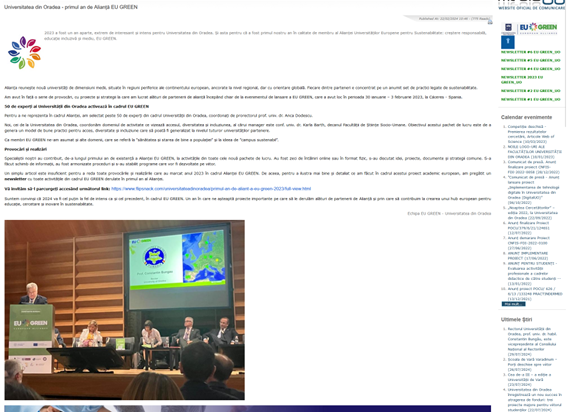 Description: A special edition of the EU GREEN newsletter of University of Oradea describing the Alliance and al the activities of the first year.