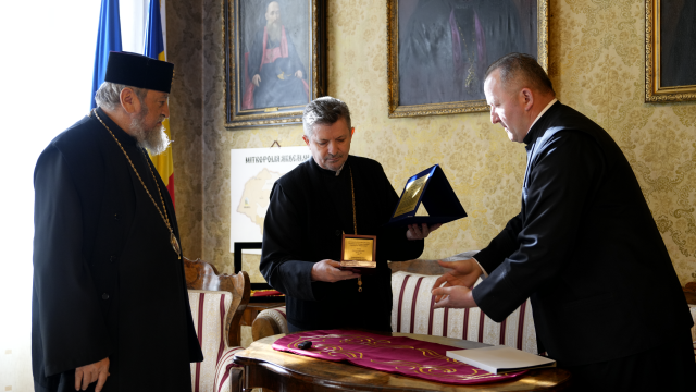 În cadrul întâlnirii, Înaltpreasfințitul Părinte Laurențiu a primit, din partea decanului Pr. conf. univ. dr. Viorel-Cristian Popa, Medalia și Diploma aniversară prilejuite de împlinirea a 100 ani de la înființarea învățământului teologic ortodox academic la Oradea.