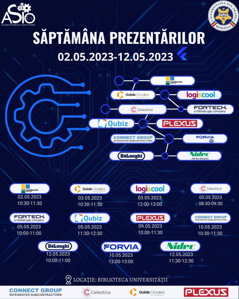 În cele zece zile dedicate evenimentului, despre care organizatorii spun că s-a dovedit a fi un pas important în ceea ce privește viitorul profesional al studenților, fiecare din companiile participante va susține câte două sesiuni de prezentare. „Ne-am bucura să avem alături de noi, la Biblioteca Universității din Oradea, cât mai mulți studenți”, mai spune Bucsko Patrik.