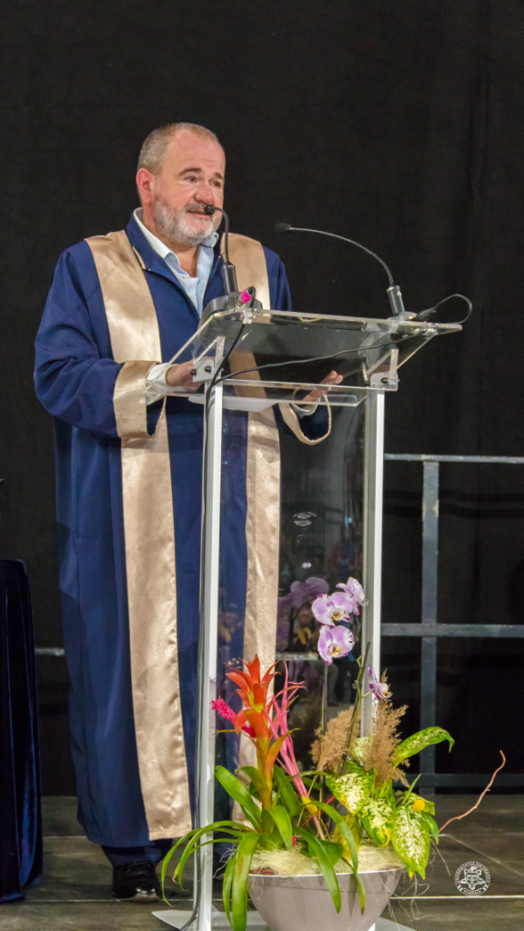 Decanul facultății, prof. univ. dr. Adrian Maghiar le-a mulțumit studenților și, mai ales, părinților pentru eforturile depuse în toți anii de facultate. Decanul Medicinei orădene a amintit că profesorii și studenții au fost umăr la umăr în lupta împotriva pandemiei. „Ați văzut atunci că, în medicină, orice se poate întâmpla”, a spus prof. univ. dr. Adrian Maghiar. Vorbind despre viitorul medicinei, universitarul a adus în discuție prezența Inteligenței Artificiale în acest domeniu. „Nu veți putea trăi și nici munci fără ea, dar să nu uitați că pacientul are nevoie de prezența dumneavoastră. Medicamentele pot vindeca bolile, dar numai medicii vindecă pacienții”, a mai spus prof. univ. dr. Adrian Maghiar. „Nu va fi o zi din viața voastră de medici în care să nu puteți spune că nu ați făcut ceva”, a mai zis decanul Medicinei orădene, cerându-le viitorilor săi colegi să continue să învețe și să fie empatici cu pacienții.