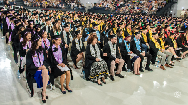 Noua sală polivalentă a Oradiei a fost plină. Flori, ținute elegante, robe, toci și multă, multă emoție. Au fost aproape 600 de absolvenți și cel puțin de două ori pe atât de mulți: părinți, bunici, frați, prieteni, unii veniți din colțuri îndepărtate ale lumii… Viitorii medici au intrat în sală precum niște adevărate vedete, în aplauzele și uralele celor veniți să împărtășească cu ei bucuria acestui eveniment.