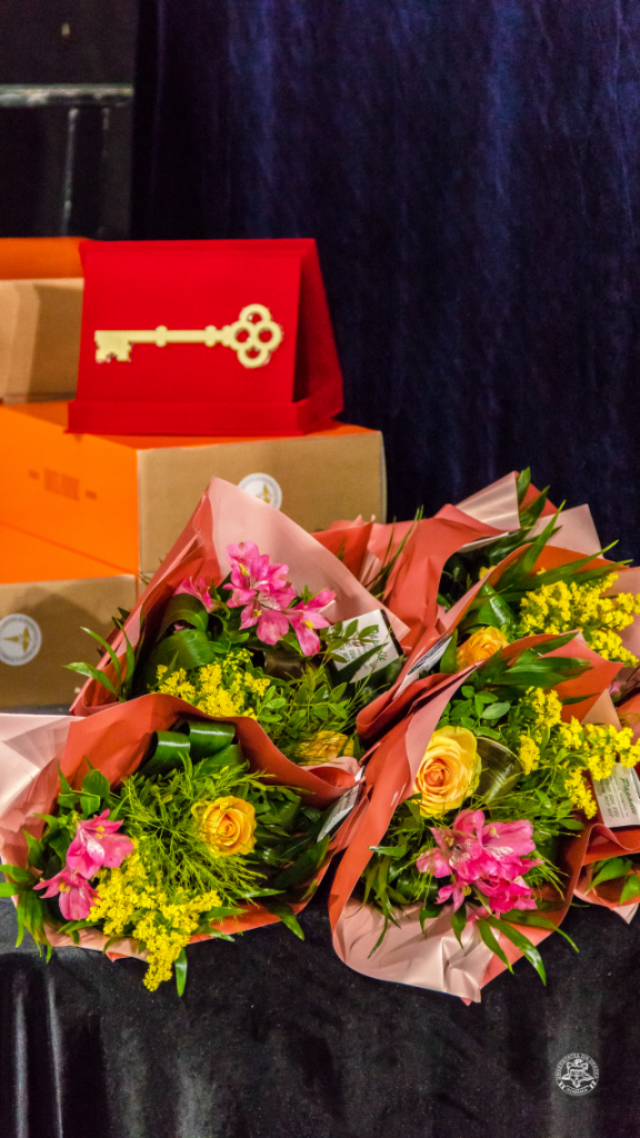 Simbolic, reprezentanții generației 2023 au predat cheia Facultății de Medicină și Farmacie colegilor lor mai tineri. Viitorii oameni în halate albe au cântat, în cor și acompaniați la chitară electrică de un coleg de-al lor, un imn al absolvenților mediciniști. Din desfășurătorul acestei ceremonii nu putea să lipsească nici jurământul lui Hipocrate. Rostind, tare și apăsat: „Jur!”, cele aproape 600 de voci ale absolvenților, au făcut aerul sălii să vibreze și să se încarce de și mai multă emoție.