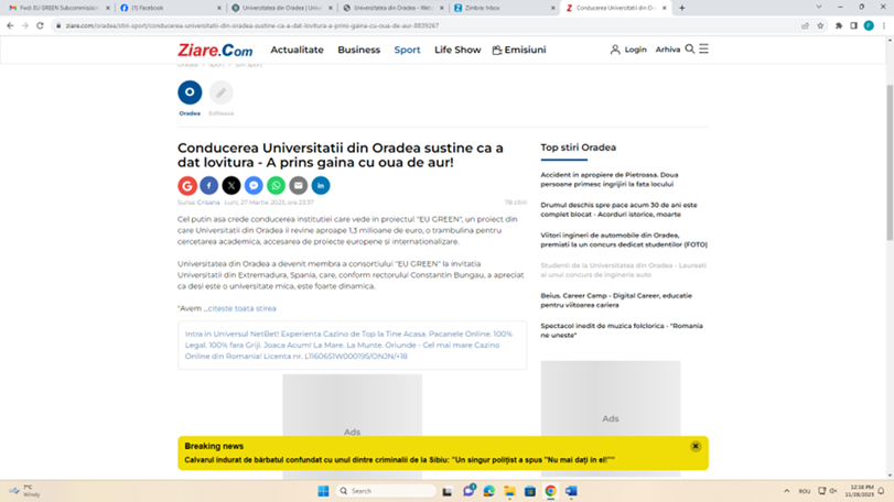 http://www.radiocluj.ro/2023/03/28/universitatea-din-oradea-membra-a-aliantei-europene-eu-green/