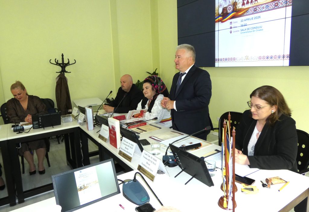 În sala Consiliului de Administrație al Universității din Oradea s-a desfășurat, la 22 aprilie  2026, Simpozionul de Antropologie al Facultății de Litere, ediția a X-a, aniversară. Tema acestui an: Tradiție și actualitate în cercetarea etno-folclorică la Facultatea de Litere. Organizată și moderată de  prof. univ. dr. habil. Florin Cioban, de la Facultatea de Litere, director al Centrului de cercetare al schimbărilor culturale naționale în contextul globalizării, manifestarea științifică a avut două părți.