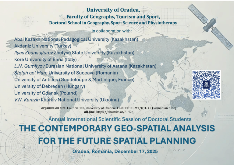 Facultatea de Geografie, Turism și Sport a Universității din Oradea, organizează miercuri – 17 decembrie 2025, conferința anuală a Școlii Doctorale de Geografie, Științele Sportului și Kinetoterapie.