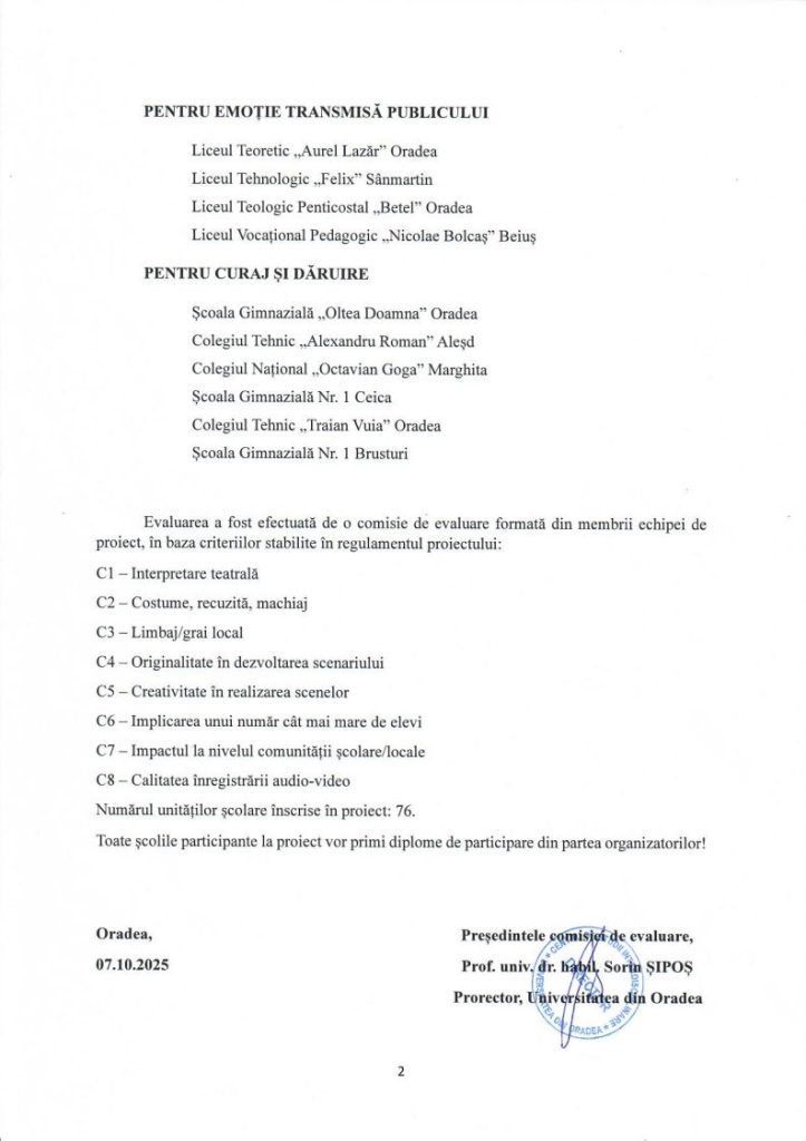 La proiect au participat 76 de unități școlare din Județul Bihor. Fotografiile și materialele audio-video primite de la dumneavoastră ne dovedesc din plin că acest proiect a fost unul de succes. Pe această cale, organizatorii țin să mulțumească tuturor cadrelor didactice implicate în proiect pentru dăruirea și responsabilitatea de care au dat dovadă. În același timp, mulțumiri speciale și felicitări se cuvin tuturor elevilor care prin talent, muncă și implicare au pus în lumină fapte din viața și activitatea lui Avram Iancu, valorile în care acesta a crezut.