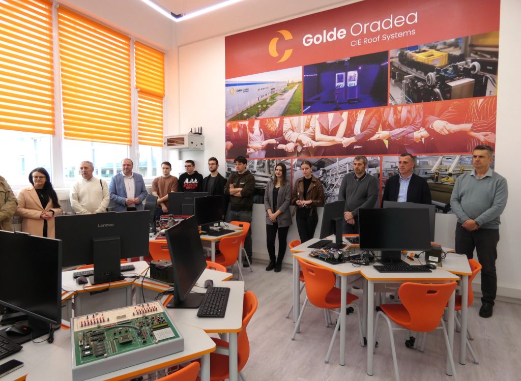 Laboratorul de Automatică al FIETI, inaugurat miercuri – 1 aprilie 2026, este un spațiu educațional modern, dotat cu computere performante și echipamente de automatizare de ultimă generație. În deschiderea evenimentului inaugural, la care au participat și reprezentanți ai GOLDE Oradea, directorul Departamentului de Ingineria Sistemelor Automate și Management al FIETI, prof. dr. Helga Silaghi a remarcat că: „Noul laborator reprezintă un mediu interactiv și atractiv de studiu, care facilitează accesul studenților la echipamente din domeniul automaticii. Prin modul de amplasare a mobilierului nou și modern, se contribuie și la crearea unui mediu propice dezvoltării, atât a competențelor profesionale, cât și a celor transversale, legate de comunicare, colaborare și stimularea muncii în echipă”.