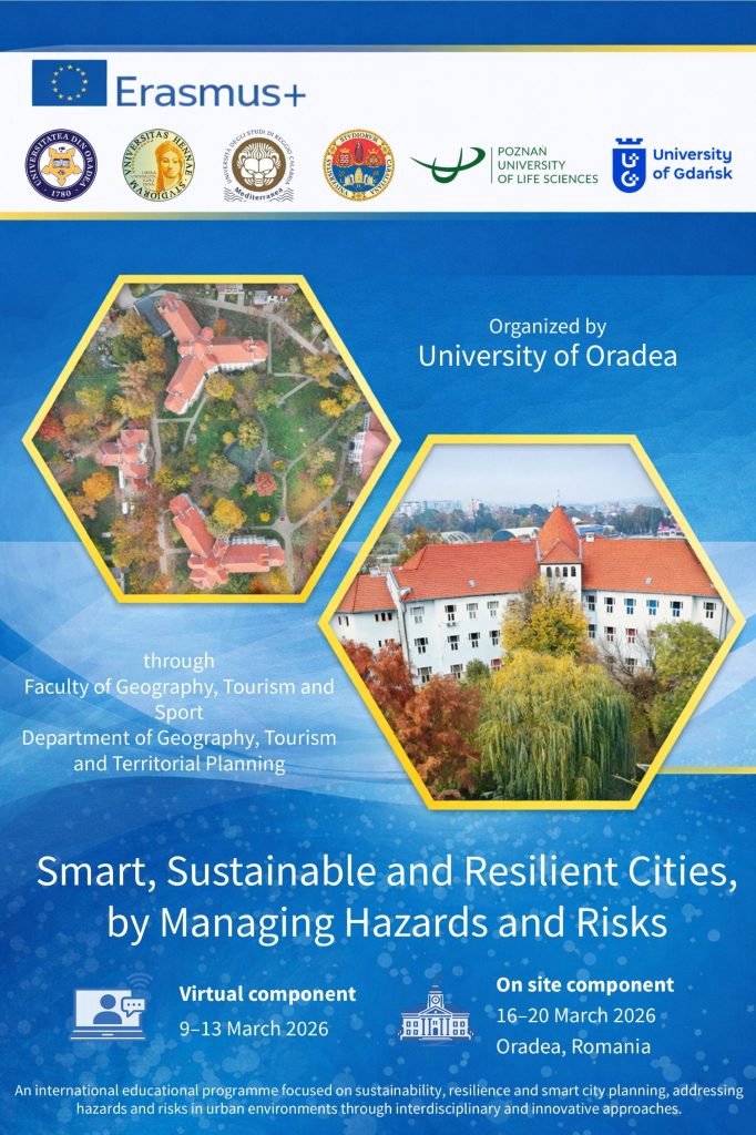 Facultatea de Geografie, Turism și Sport a Universității din Oradea, a organizat și susținut, între 9 – 20 martie 2026, Programul Intensiv Mixt (BIP) Erasmus+ cu titlul: „Smart, Sustainable and Resilient Cities, by Managing Hazards and Risks”.
