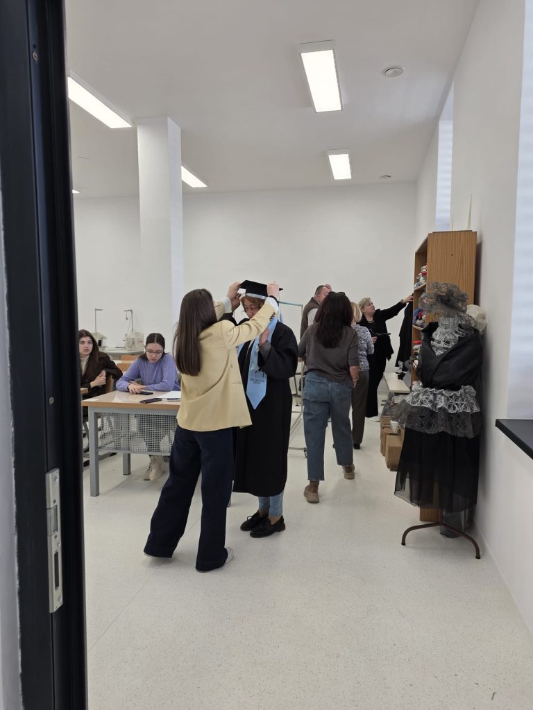 Studenții lucrează intens la realizarea robelor care vor fi purtate la ceremonia de absolvire, un proiect ce îmbină pregătirea practică cu simbolistica unui moment definitoriu din viața academică.